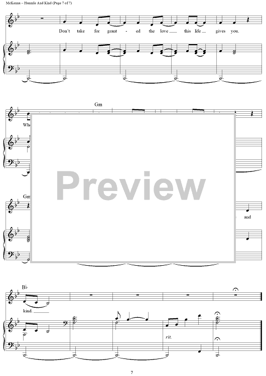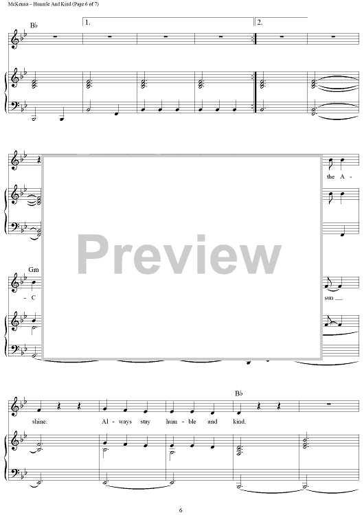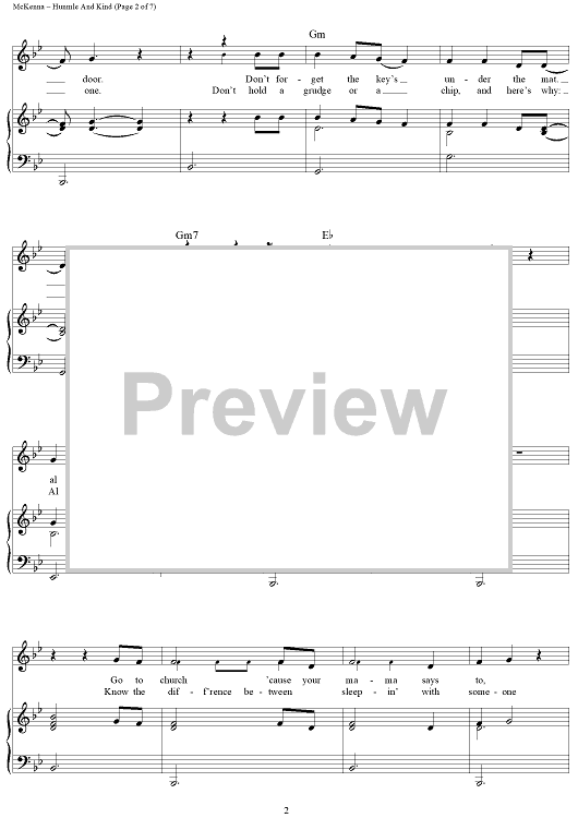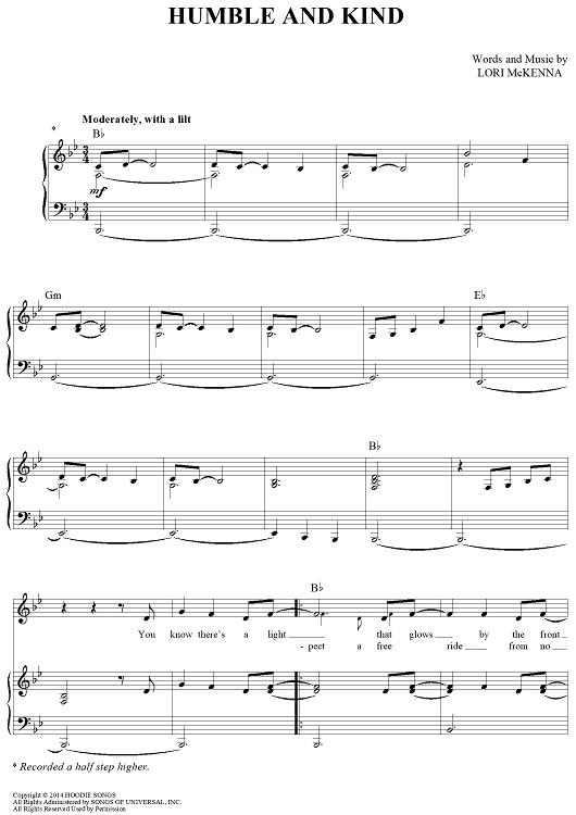 Digital Sheet Music for Humble and Kind by Tim McGraw, Lori McKenna scored for Piano/Vocal/Chords; id:457361