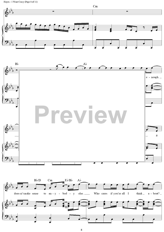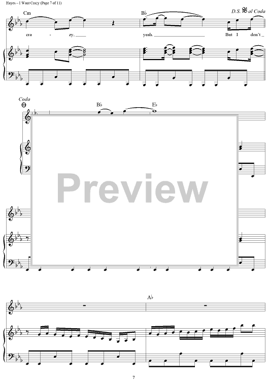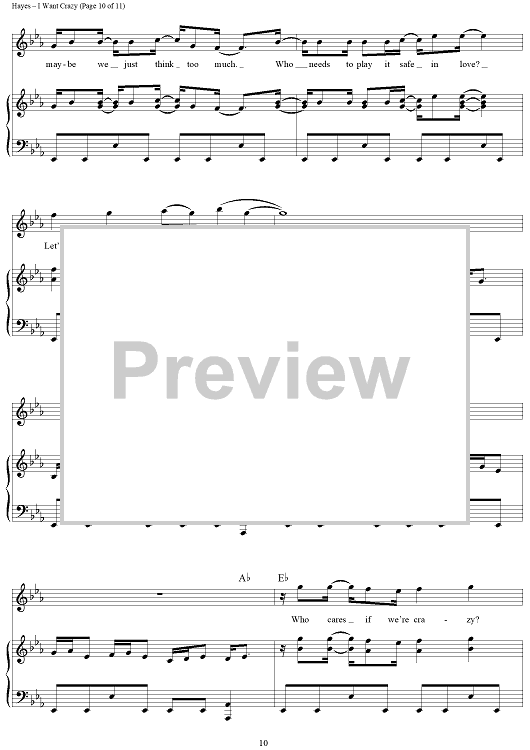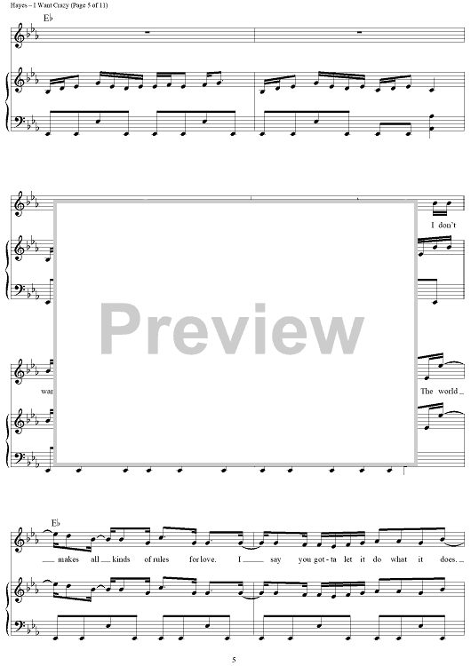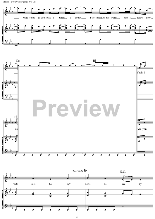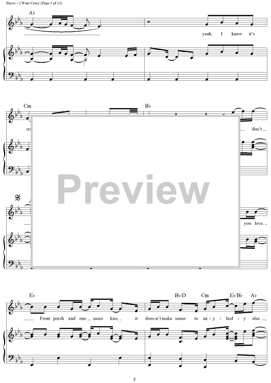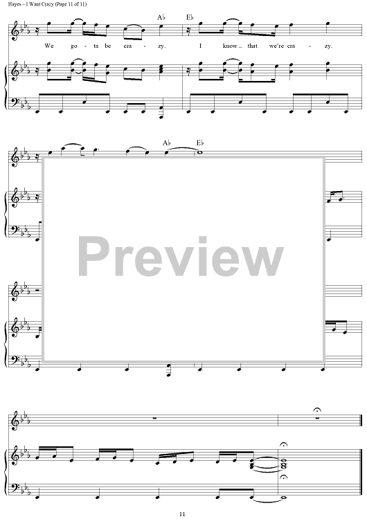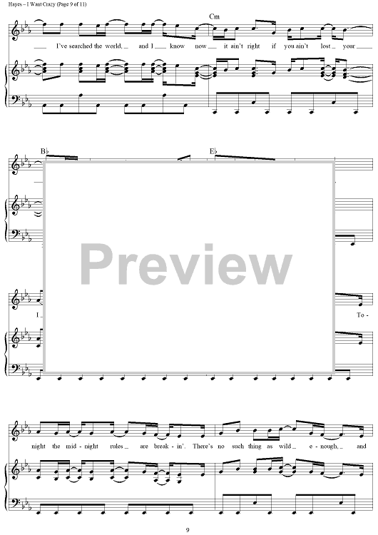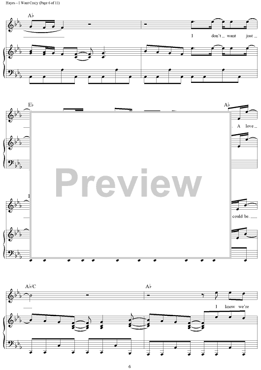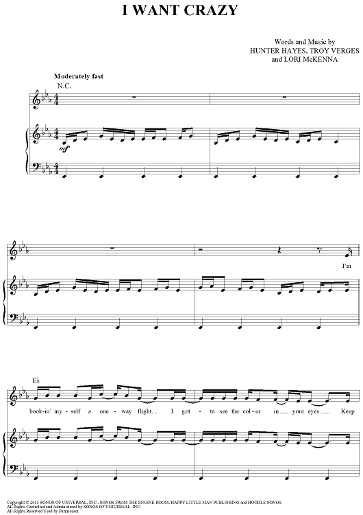 Digital Sheet Music for I Want Crazy by Troy Verges, Hunter Hayes, Lori McKenna scored for Piano/Vocal/Chords; id:441759