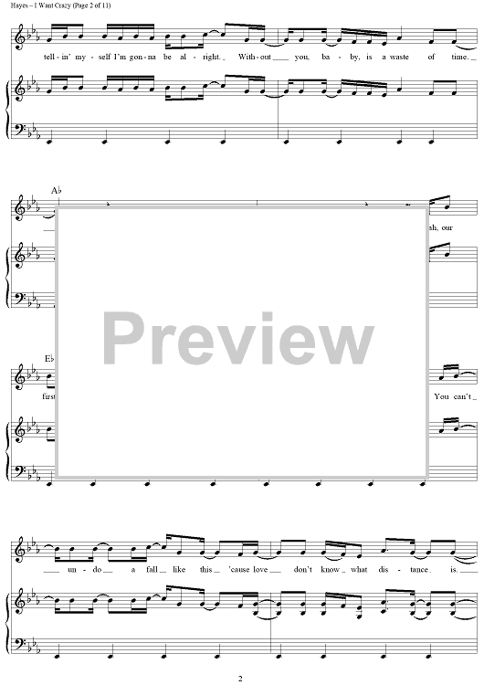 "I Want Crazy" Sheet Music by Hunter Hayes