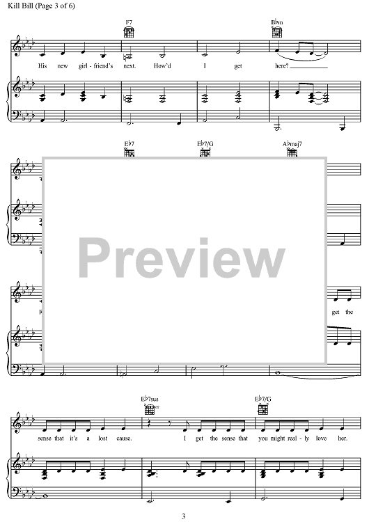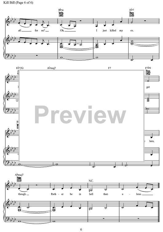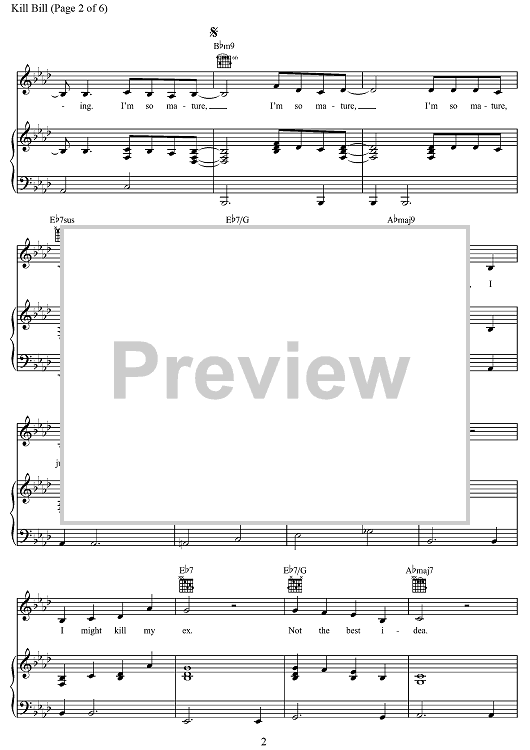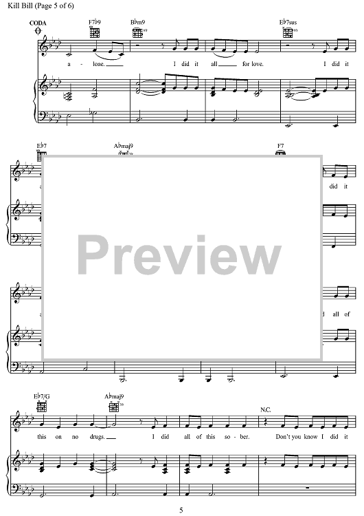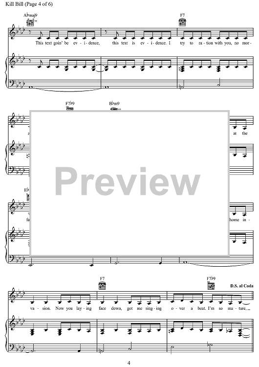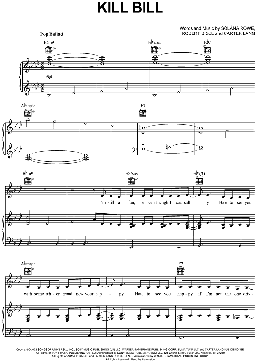 Digital Sheet Music for Kill Bill by SZA, Carter Lang, Robert Bisel scored for Piano/Vocal/Chords; id:499916
