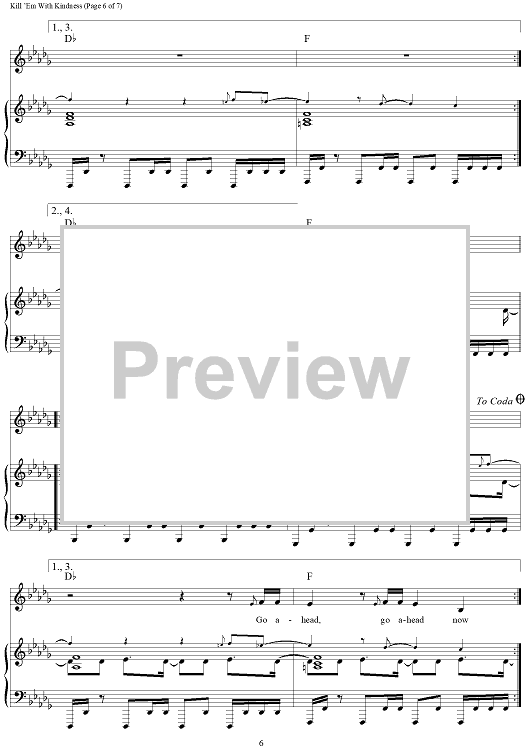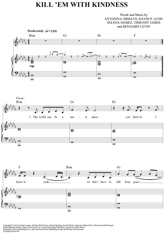 Digital Sheet Music for Kill 'Em With Kindness by Antonina Armato, Tim James, Benjamin Levin, Selena Gomez, David P. Aude scored for Piano/Vocal/Chords; id:459980