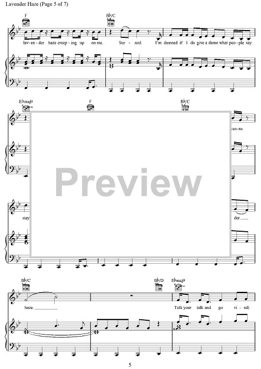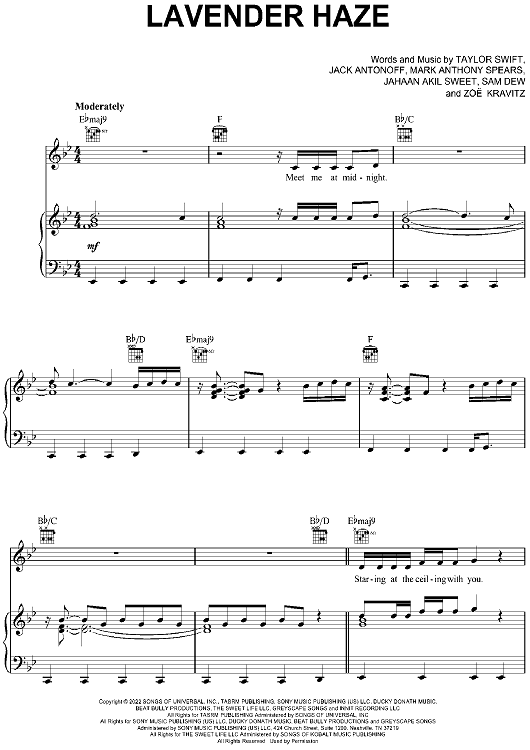 Digital Sheet Music for Lavender Haze by Taylor Swift, Jack Antonoff, Sam Dew, Mark Anthony Spears, Jahaan Akil Sweet, Zoë Kravitz scored for Piano/Vocal/Chords; id:498168