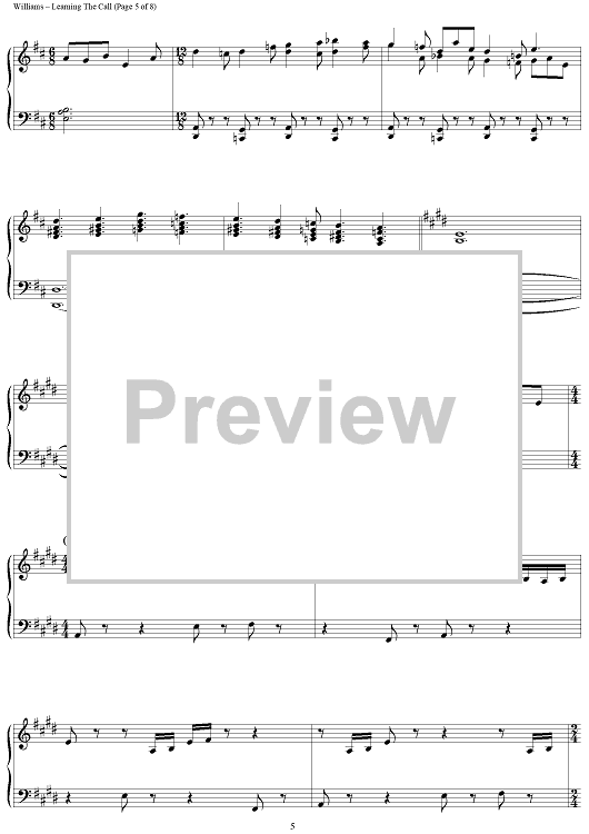 Digital Sheet Music for Learning the Call by John Williams scored for Piano Solo; id:451956