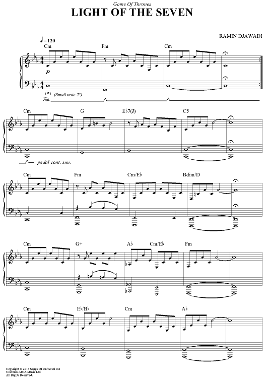 "Light Of The Seven" Sheet Music by Ramin Djawadi