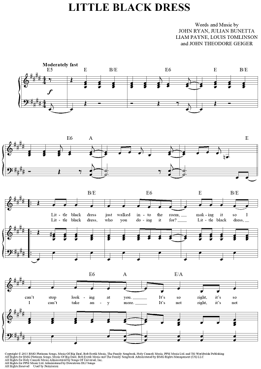 Digital Sheet Music for Little Black Dress by Teddy Geiger, One Direction, Liam Payne, Louis Tomlinson, Julian Bunetta, John Ryan scored for Piano/Vocal/Chords; id:445331
