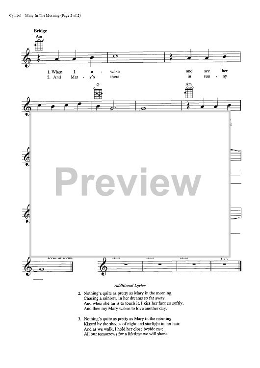 "Mary in the Morning" Sheet Music by Johnny Cymbal
