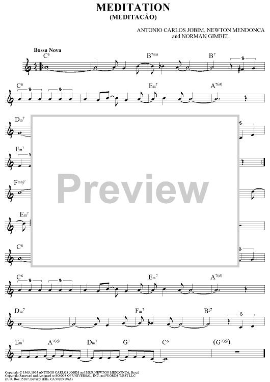 Digital Sheet Music for Meditation by Norman Gimbel, Antonio Carlos Jobim, Newton Mendonca scored for Lead Sheet; id:452352