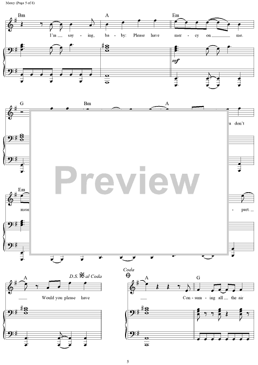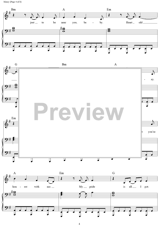 "Mercy" Sheet Music by Shawn Mendes