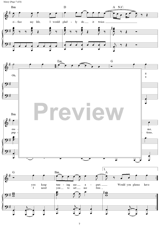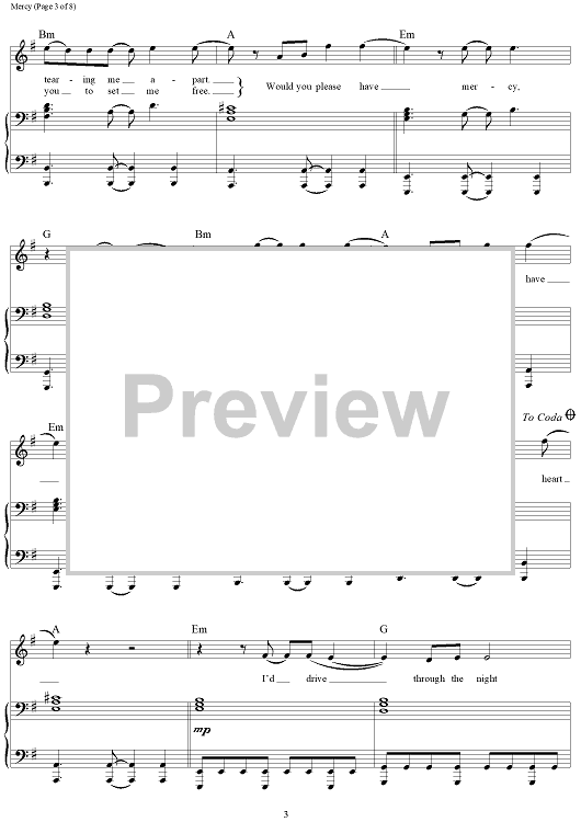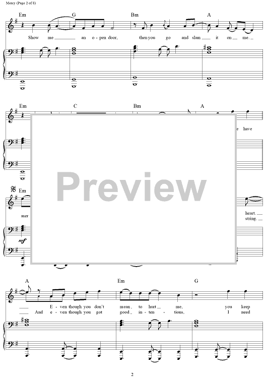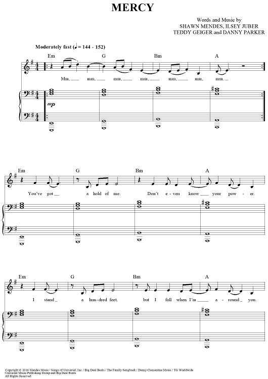 Digital Sheet Music for Mercy by Teddy Geiger, Ilsey Juber, Danny Parker, Shawn Mendes scored for Piano/Vocal/Chords; id:461253