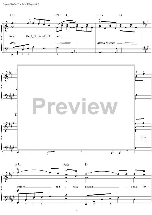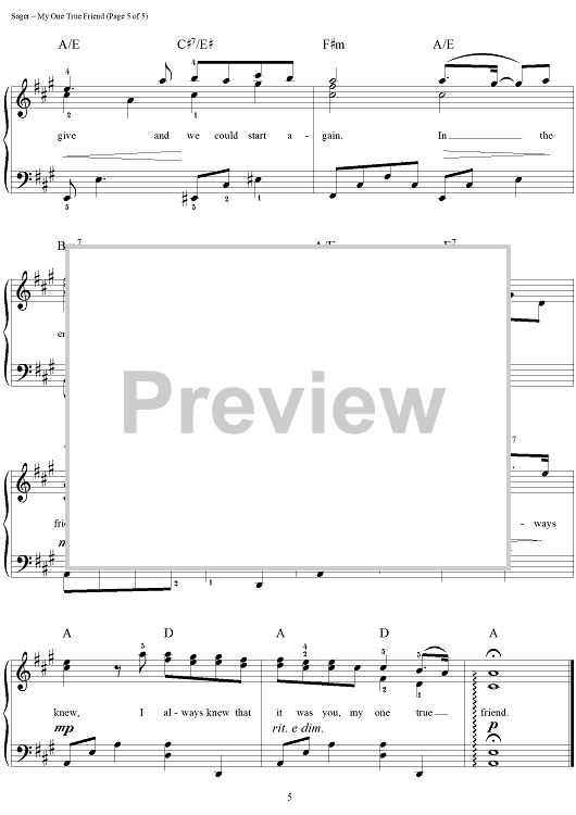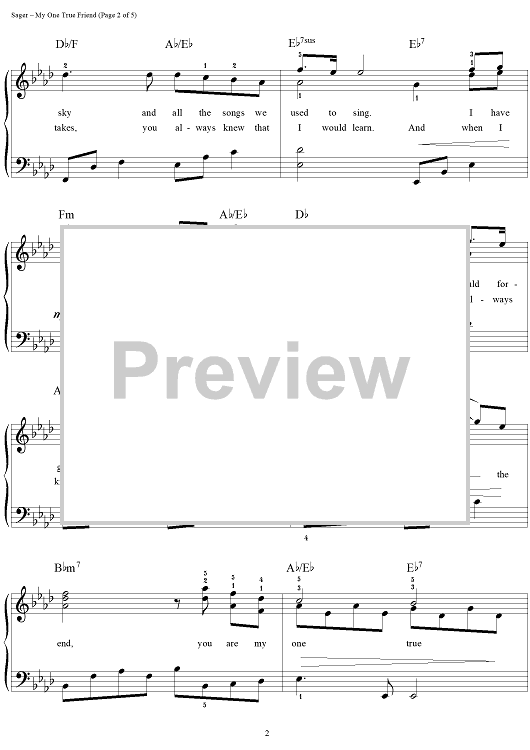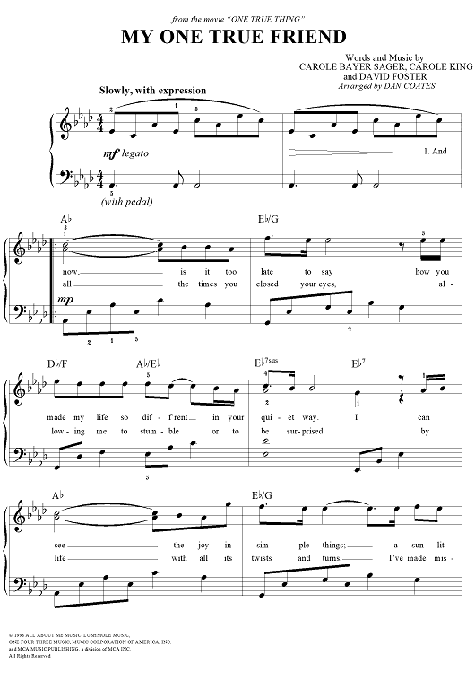 Digital Sheet Music for My One True Friend by Dan Coates, Carole Bayer Sager, Carole King, David Foster, Bette Midler scored for Easy Piano/Vocal; id:112132