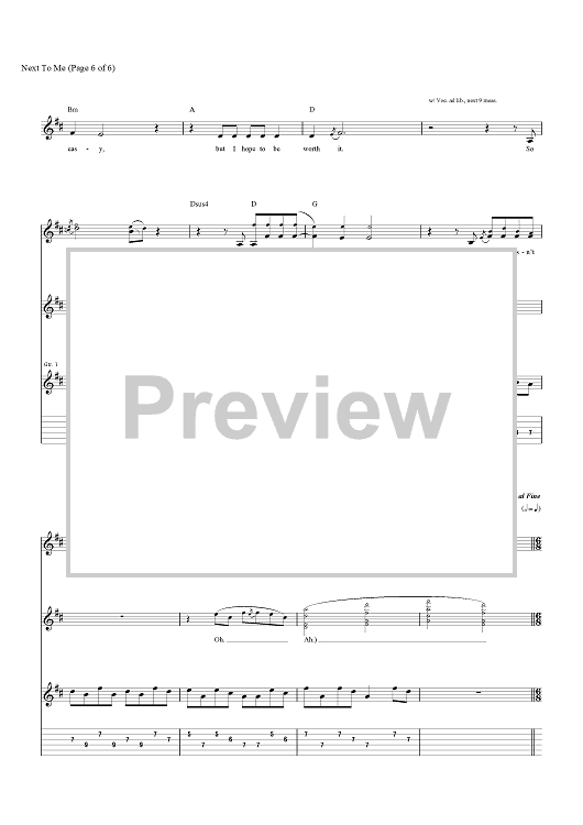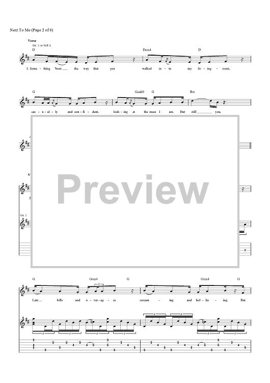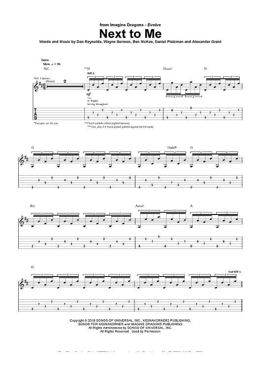 Digital Sheet Music for Next To Me by Alexander Grant, Daniel Reynolds, Benjamin McKee, Imagine Dragons, Daniel Platzman, Wayne Sermon scored for Guitar Tab/Vocal/Chords; id:466215