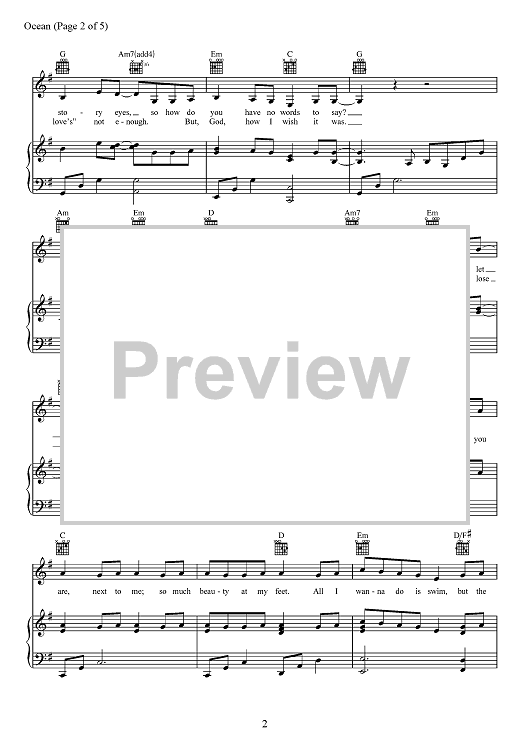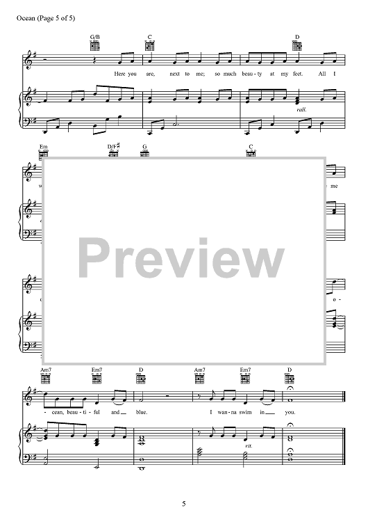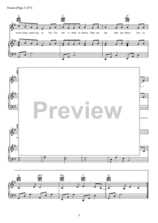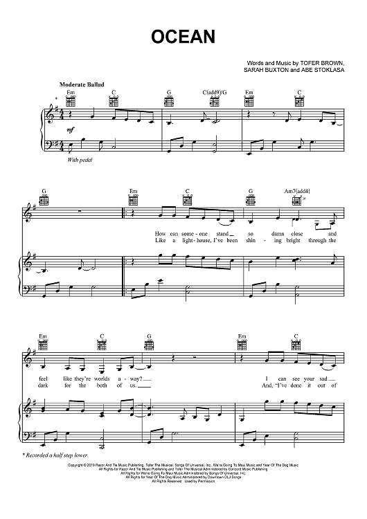Digital Sheet Music for Ocean by Sarah Buxton, Lady Antebellum, Abe Stoklasa, Tofer Brown scored for Piano/Vocal/Chords; id:467827