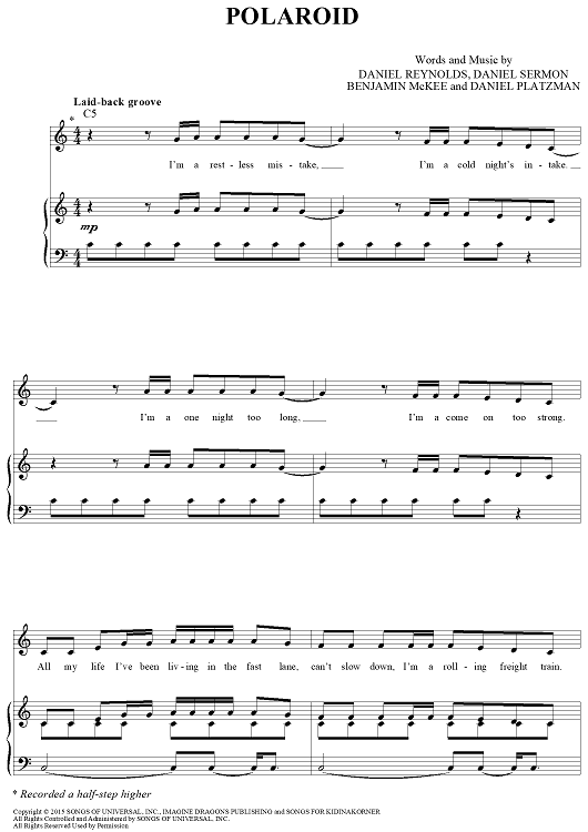 Digital Sheet Music for Polaroid by Daniel Reynolds, Benjamin McKee, Daniel Sermon, Imagine Dragons, Daniel Platzman scored for Piano/Vocal/Chords; id:456349