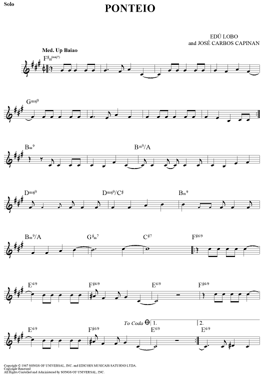 Digital Sheet Music for Ponteio by Edu Lobo, José Carbos Capinan scored for Lead Sheet; id:456688
