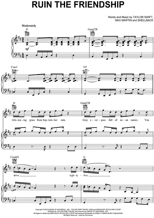 "Ruin The Friendship" Sheet Music by Taylor Swift