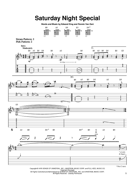 "Saturday Night Special" Sheet Music by Lynyrd Skynyrd