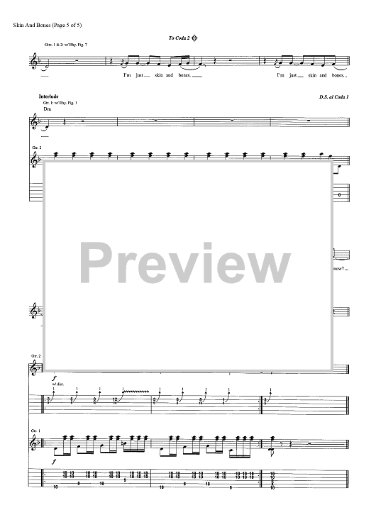 "Skin and Bones" Sheet Music by Foo Fighters