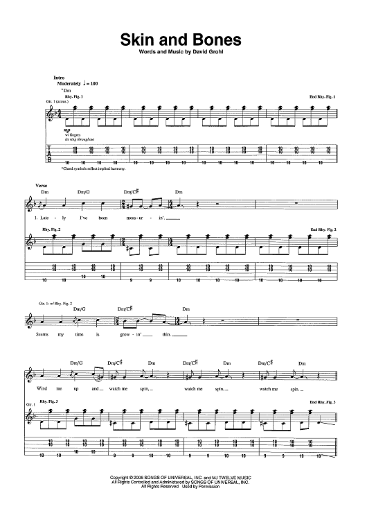 Digital Sheet Music for Skin and Bones by Foo Fighters, Dave Grohl scored for Guitar Tab/Vocal/Chords; id:456895