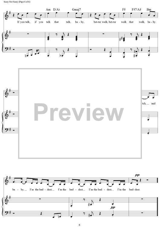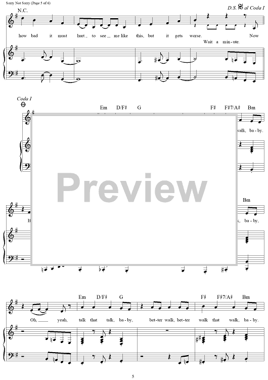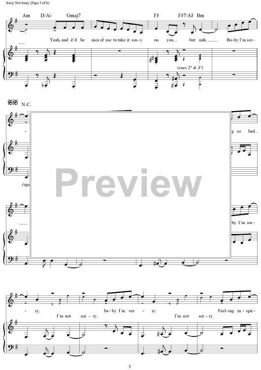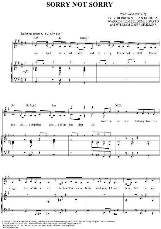 Digital Sheet Music for Sorry Not Sorry by Demi Lovato, Sean Douglas, Trevor Brown, Warren Fedler, William Zaire Simmons scored for Piano/Vocal/Chords; id:465404