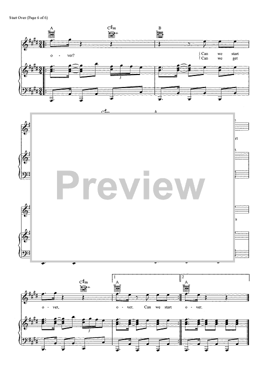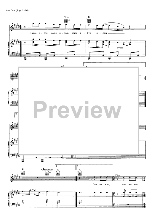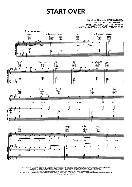 Digital Sheet Music for Start Over by Daniel Reynolds, Benjamin McKee, Imagine Dragons, Daniel Platzman, Wayne Sermon, Justin Tranter, Robin Fredriksson, Mattias Larsson scored for Piano/Vocal/Chords; id:465802