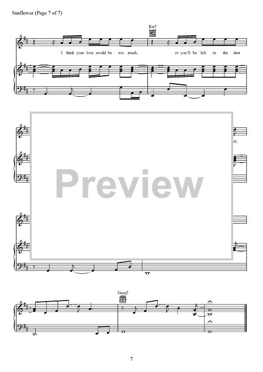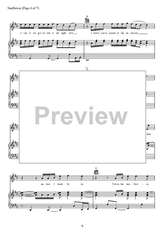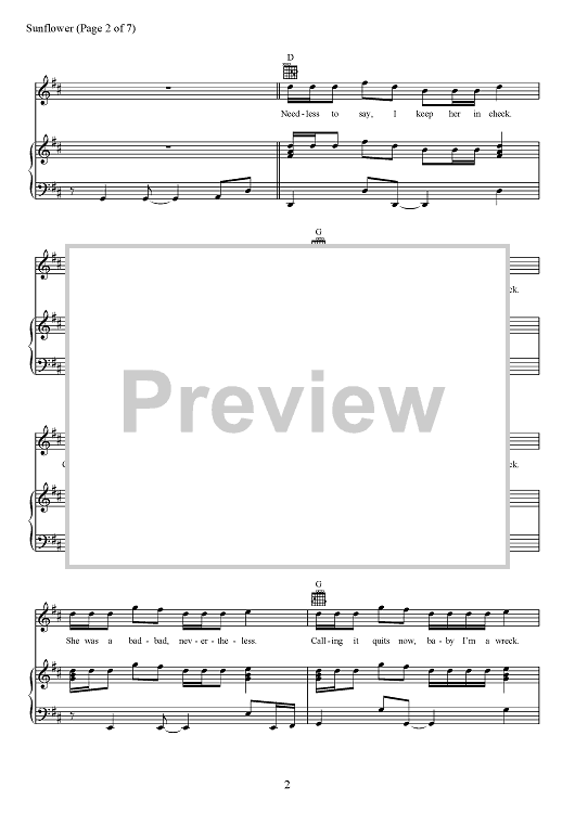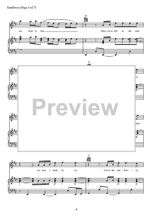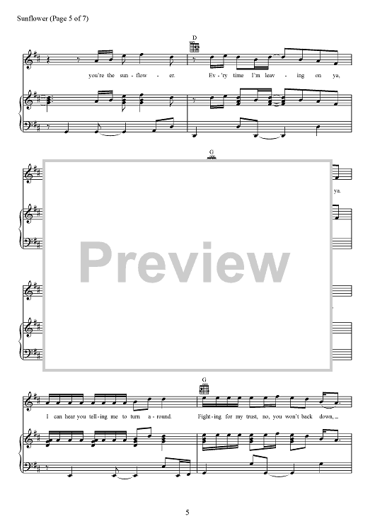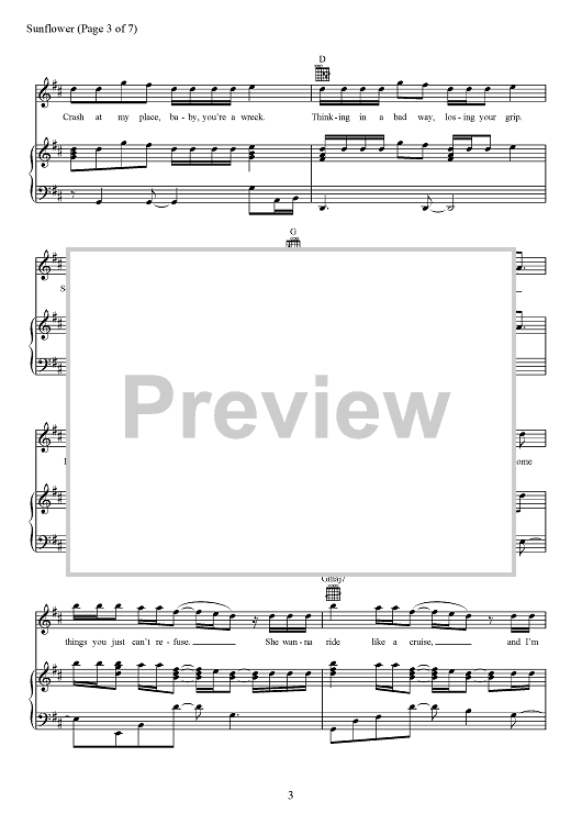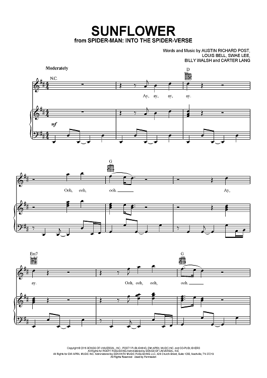 Digital Sheet Music for Sunflower - from Spider-Man: Into The Spider-Verse by Louis Bell, Billy Walsh, Austin Richard Post, Swae Lee, Carter Lang scored for Piano/Vocal/Chords; id:466837