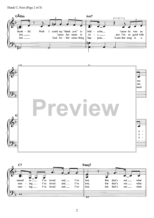 "Thank U, Next" Sheet Music by Ariana Grande