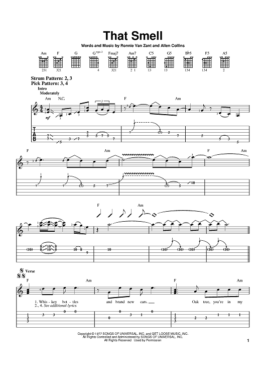 "That Smell" Sheet Music by Lynyrd Skynyrd