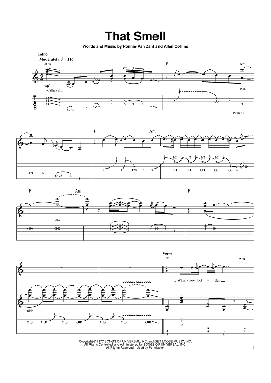 Digital Sheet Music for That Smell by Lynyrd Skynyrd, Allen Collins, Ronnie Van Zant scored for Guitar Tab; id:395895