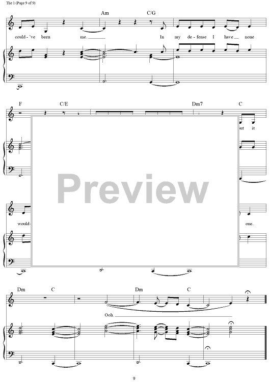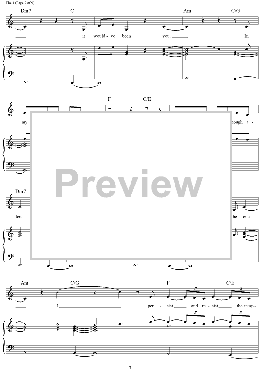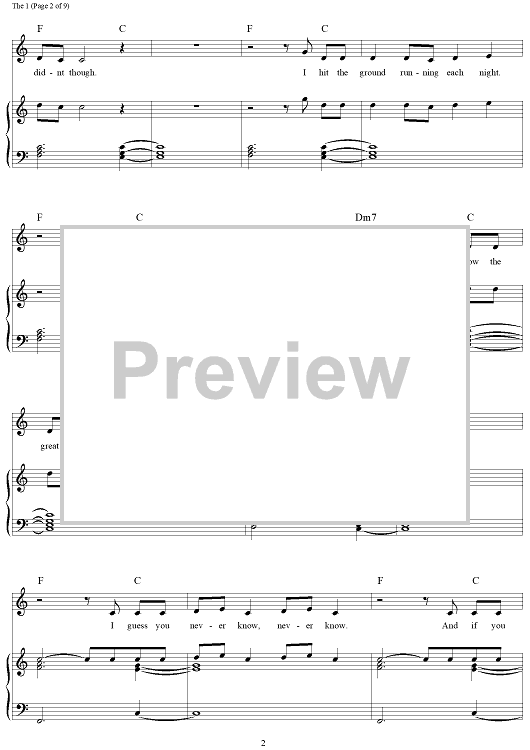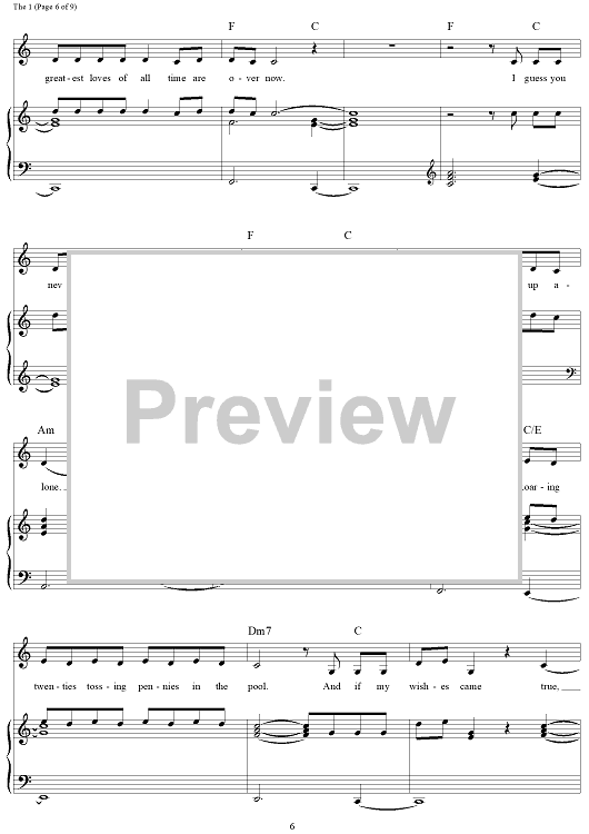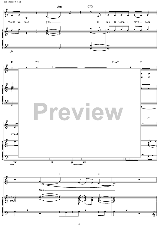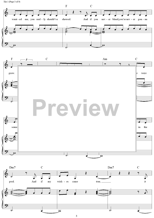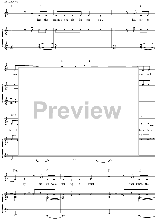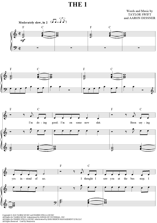 Digital Sheet Music for THE 1 by Taylor Swift, Aaron Dessner scored for Piano/Vocal/Chords; id:468494