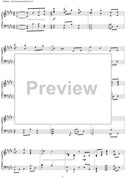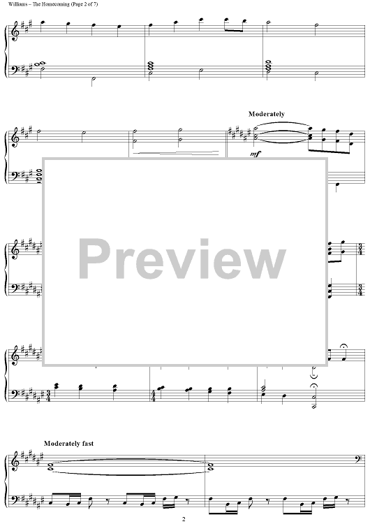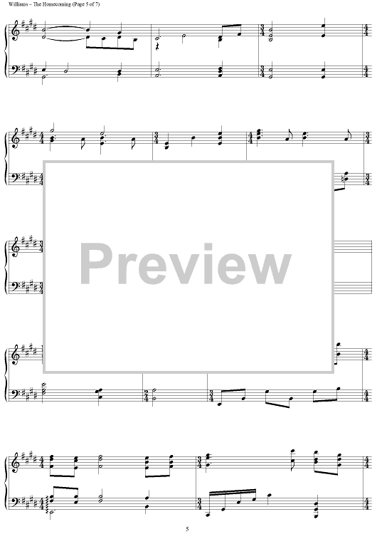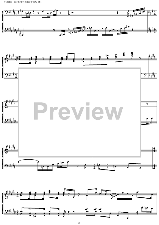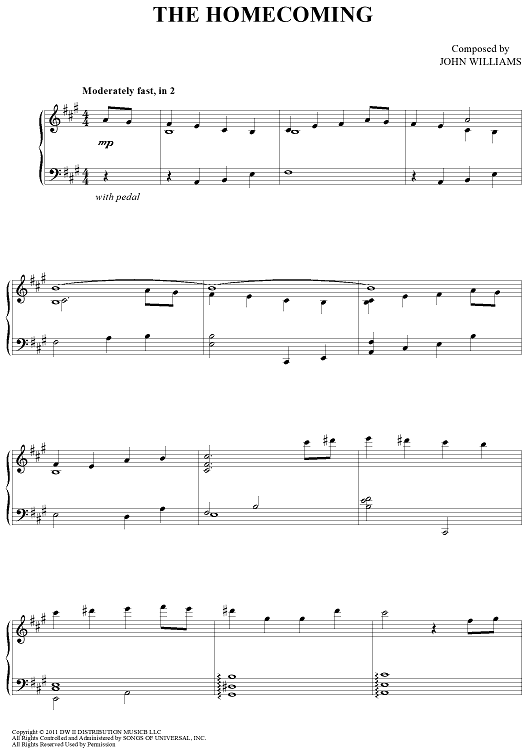 Digital Sheet Music for The Homecoming by John Williams scored for Piano Solo; id:451962