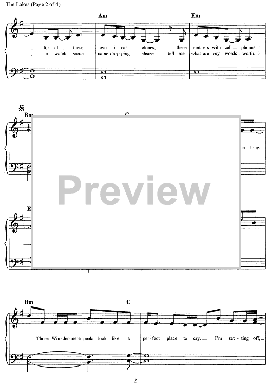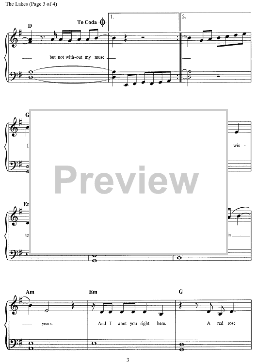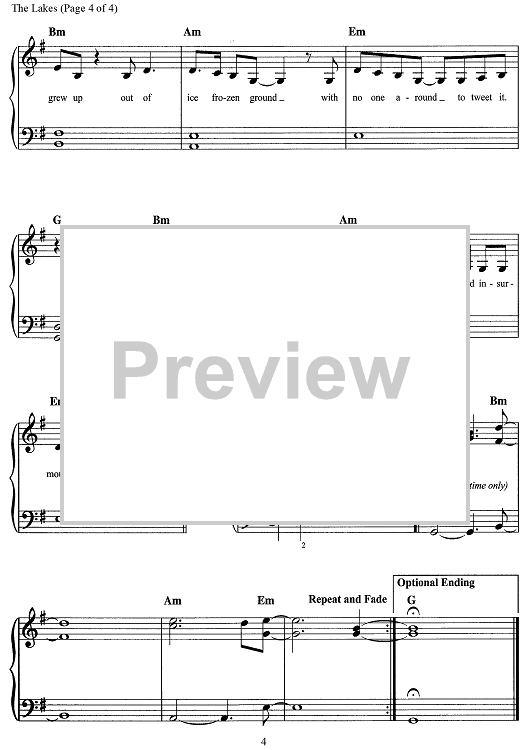 Digital Sheet Music for The Lakes by Taylor Swift scored for Easy Piano/Vocal/Chords; id:468739