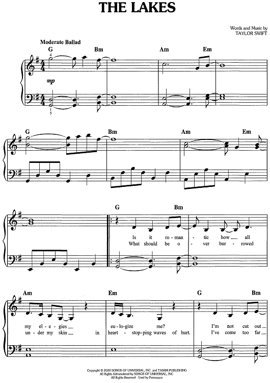 "The Lakes" Sheet Music by Taylor Swift