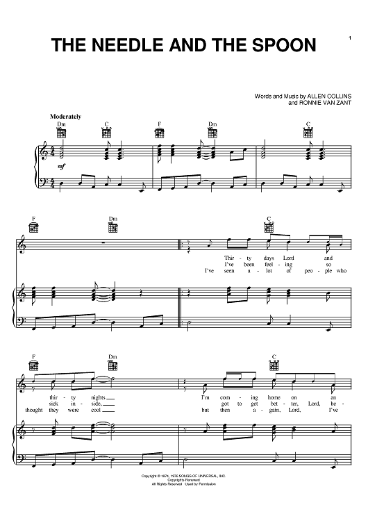 Digital Sheet Music for The Needle And The Spoon by Lynyrd Skynyrd, Allen Collins, Ronnie Van Zant scored for Piano/Vocal/Chords; id:381607