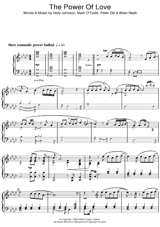 Digital Sheet Music for The Power Of Love by Frankie Goes To Hollywood, Peter Gill, Holly Johnson, Brian Nash, Mark O'Toole scored for Piano Solo; id:393293
