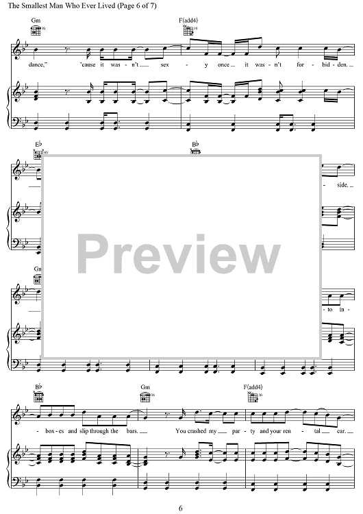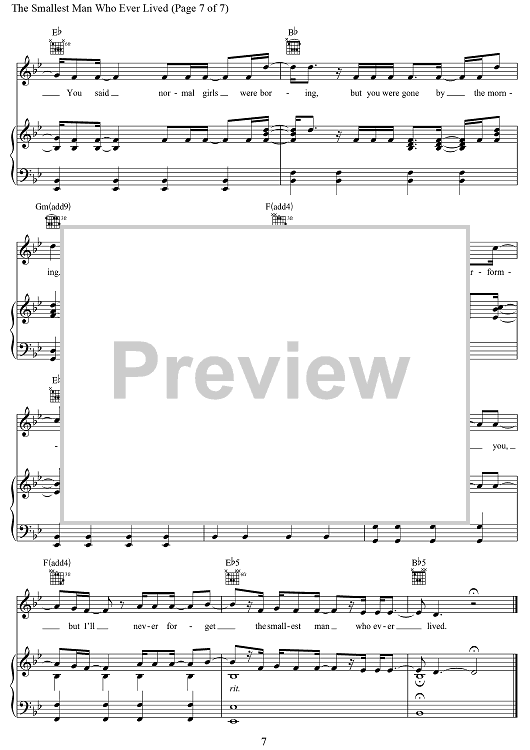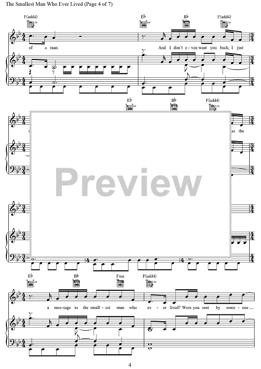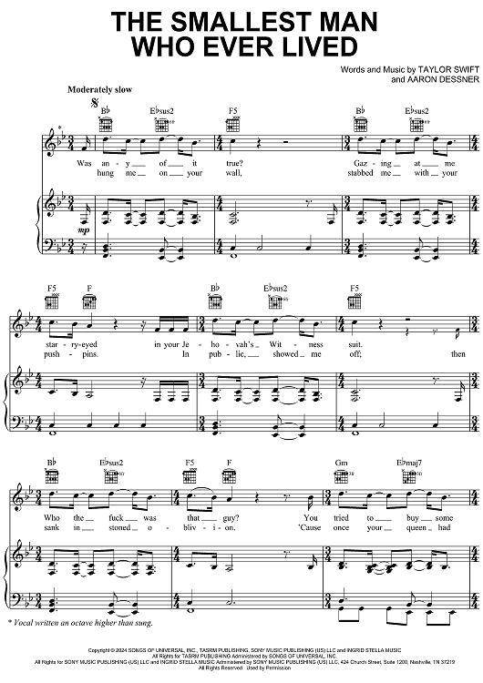 Digital Sheet Music for The Smallest Man Who Ever Lived by Taylor Swift, Aaron Dessner scored for Piano/Vocal/Chords; id:501846