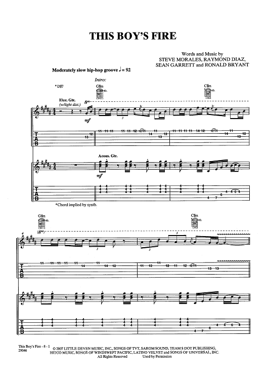 Digital Sheet Music for This Boy's Fire by Jennifer Lopez, Steve Morales, Santana, Sean Garrett, Ronald Bryant, Raymond Diaz scored for Guitar Tab/Vocal; id:437555