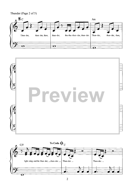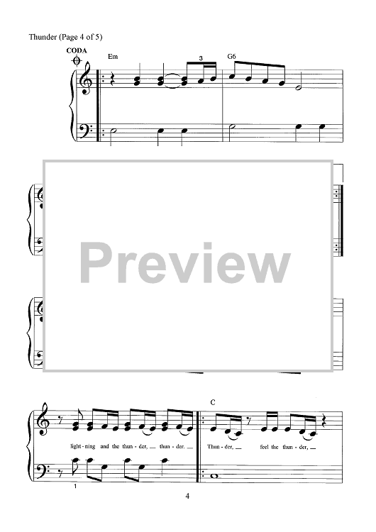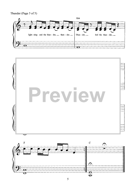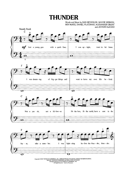 Digital Sheet Music for Thunder by Alexander Grant, Daniel Reynolds, Benjamin McKee, Imagine Dragons, Daniel Platzman, Wayne Sermon, Jayson DeZuzio scored for Big Note Piano; id:466814