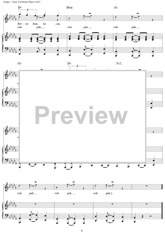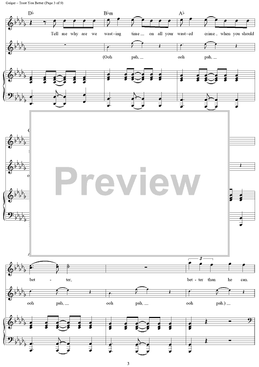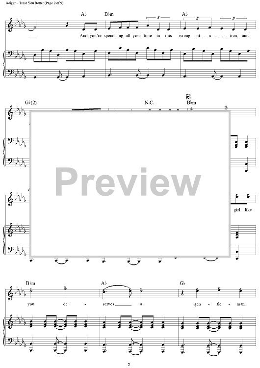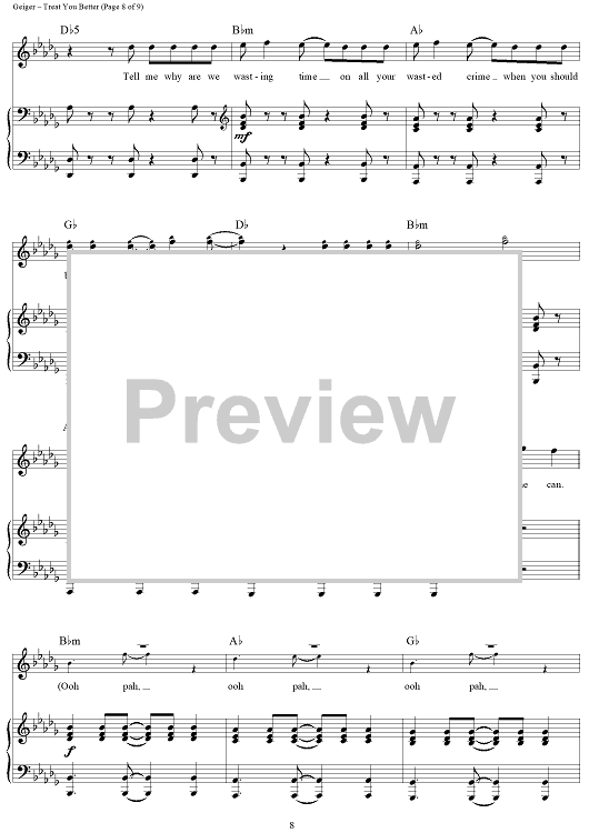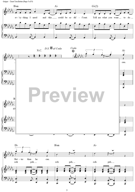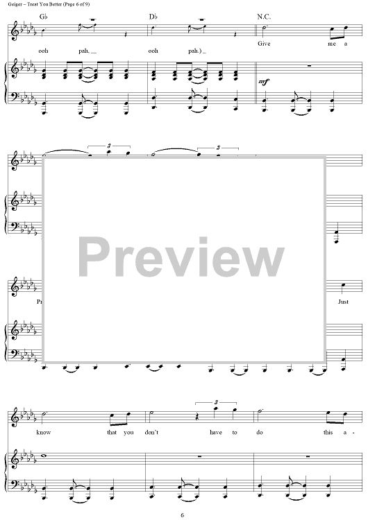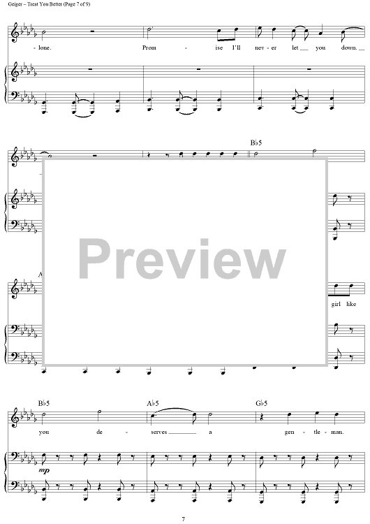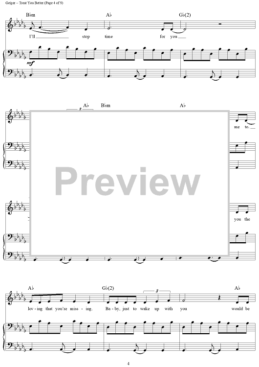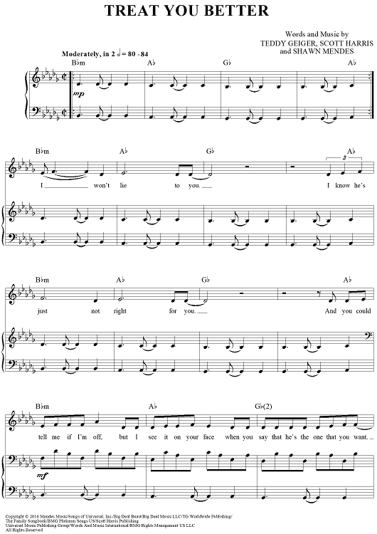 Digital Sheet Music for Treat You Better by Teddy Geiger, Scott Harris, Shawn Mendes scored for Piano/Vocal/Chords; id:460410