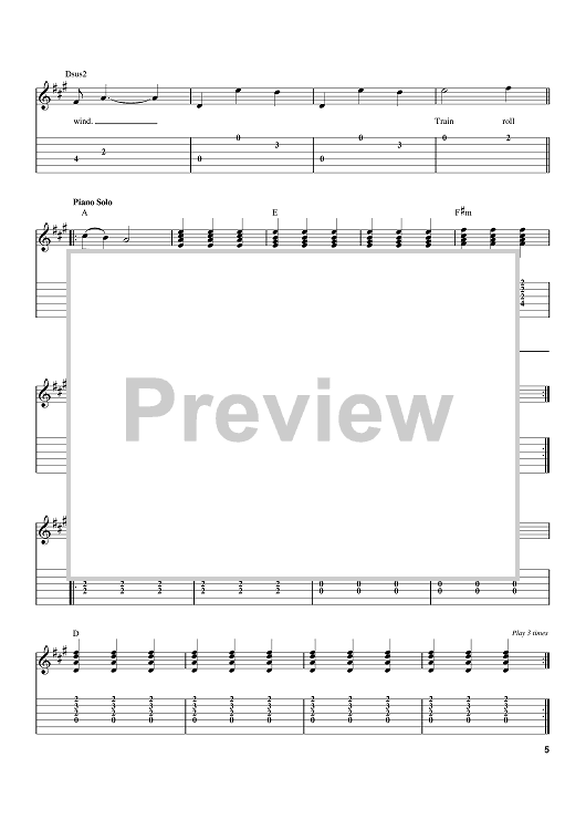 Digital Sheet Music for Tuesday's Gone by Lynyrd Skynyrd, Allen Collins, Ronnie Van Zant scored for Easy Guitar Tab; id:393984