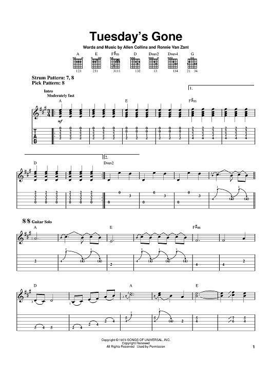"Tuesday's Gone" Sheet Music by Lynyrd Skynyrd