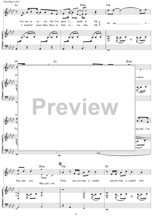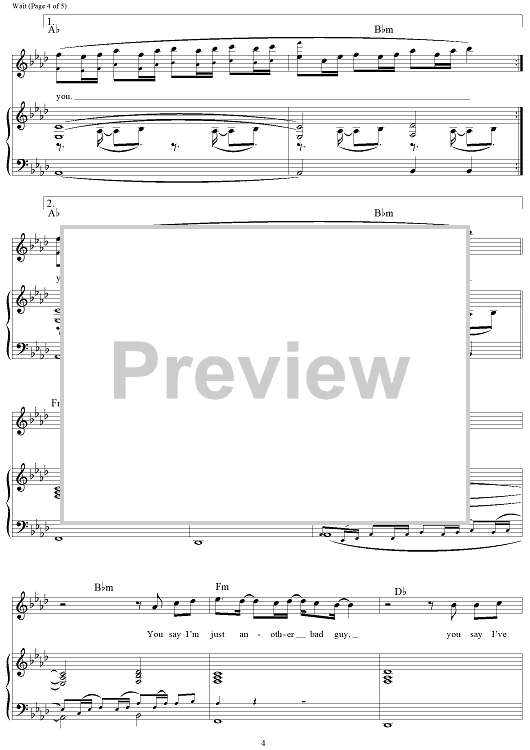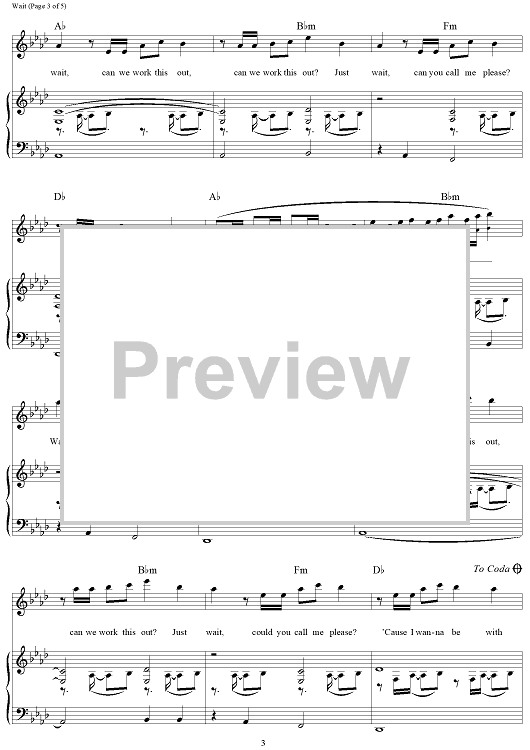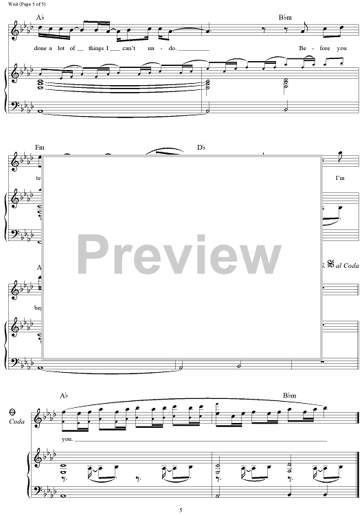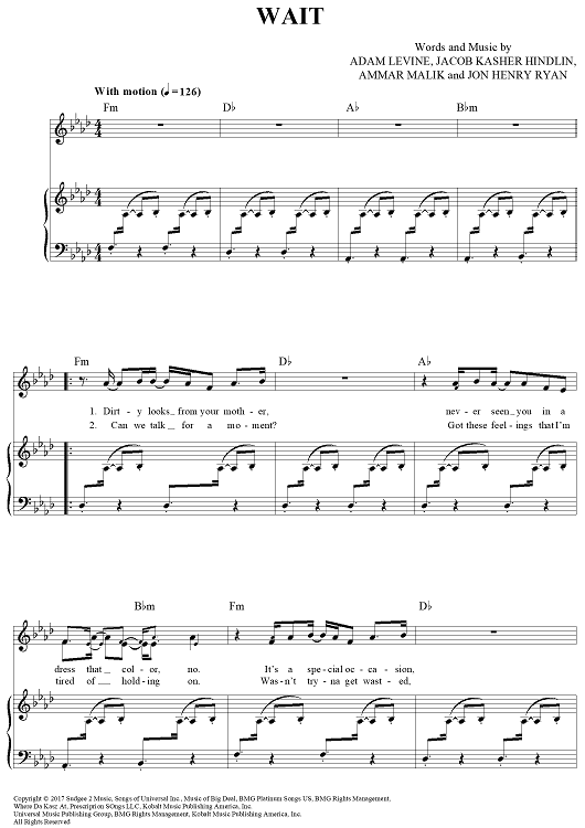 Digital Sheet Music for Wait by Adam Levine, Maroon 5, Jacob Hindlin, Zain Malik, John Henry Ryan scored for Piano/Vocal/Chords; id:465815