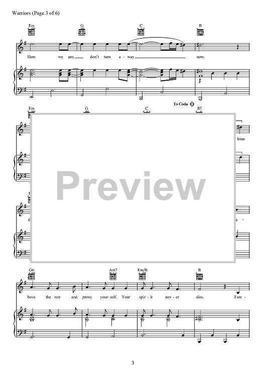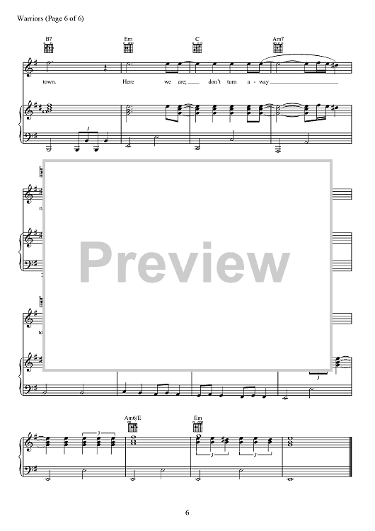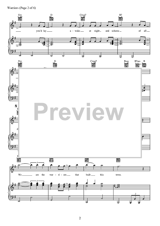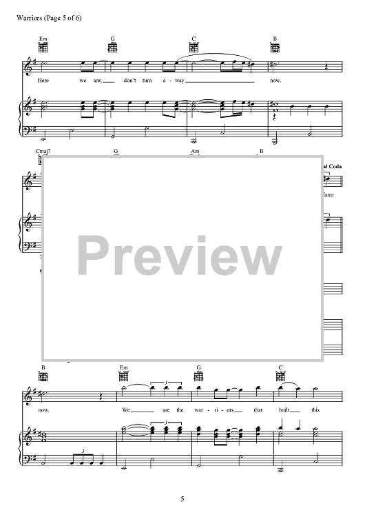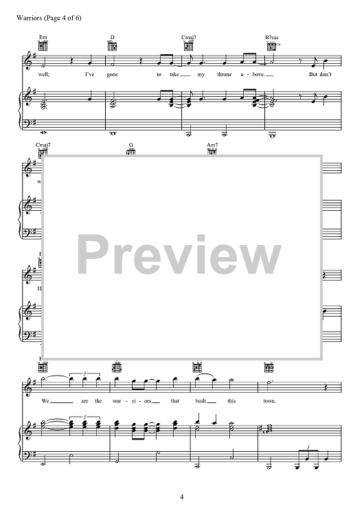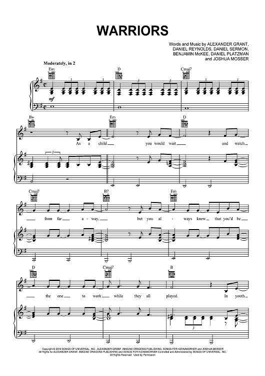 Digital Sheet Music for Warriors by Alexander Grant, Daniel Reynolds, Benjamin McKee, Daniel Sermon, Josh Mosser, Imagine Dragons, Daniel Platzman scored for Piano/Vocal/Chords; id:467414