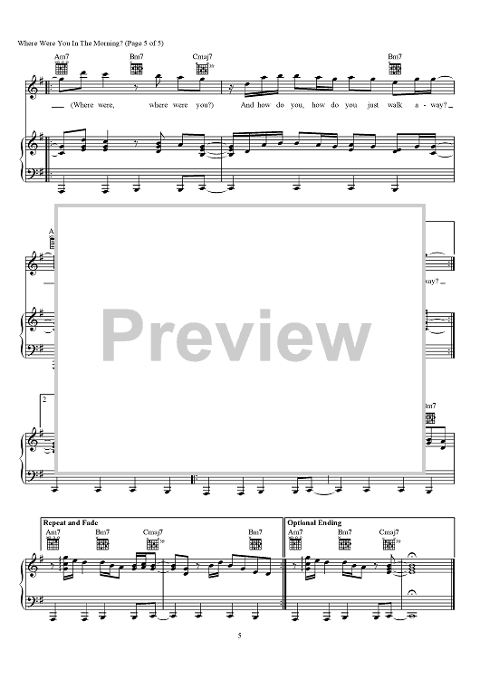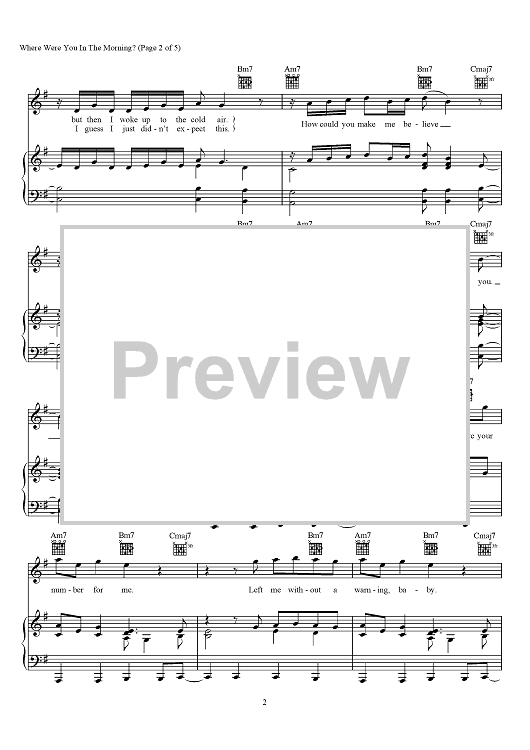 Digital Sheet Music for Where Were You In The Morning? by Teddy Geiger, Scott Harris, Shawn Mendes, Geoffrey Warburton scored for Piano/Vocal/Chords; id:466471