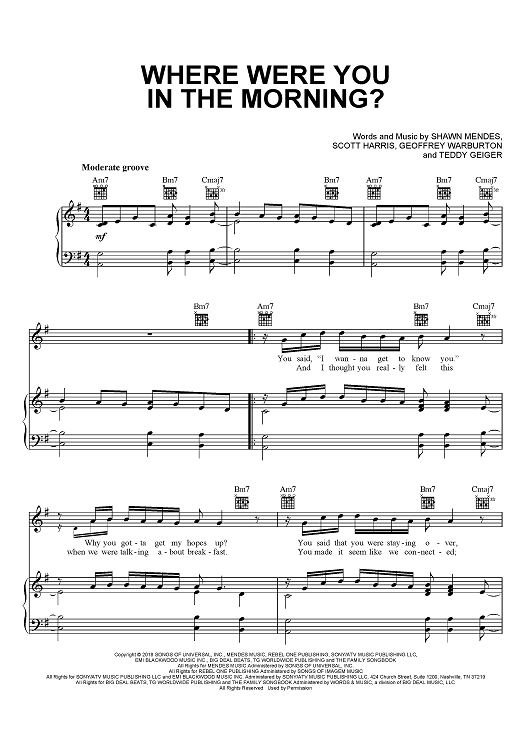 "Where Were You In The Morning?" Sheet Music by Shawn Mendes