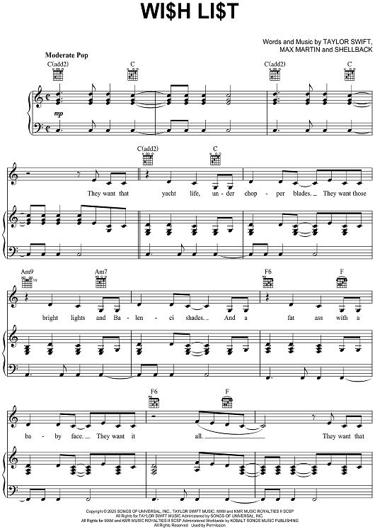 "W$sh Li$t" is a track on 'The Life of a Showgirl', the 12th studio album by the American singer-songwriter Taylor Swift.