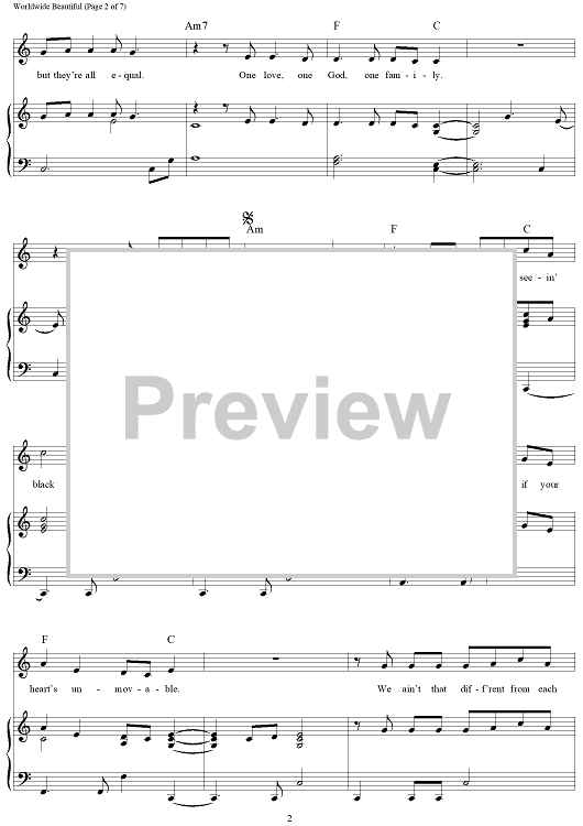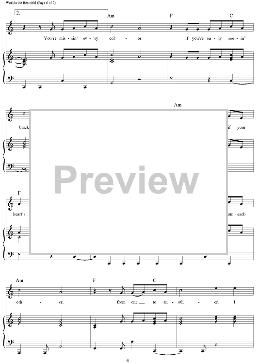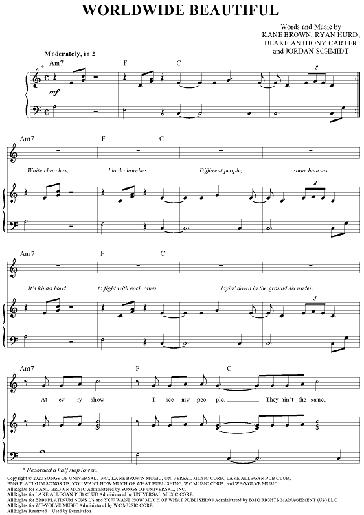 Digital Sheet Music for Worldwide Beautiful by Ryan Hurd, Shy Carter, Kane Brown, Jordan Schmidt scored for Piano/Vocal/Chords; id:468432