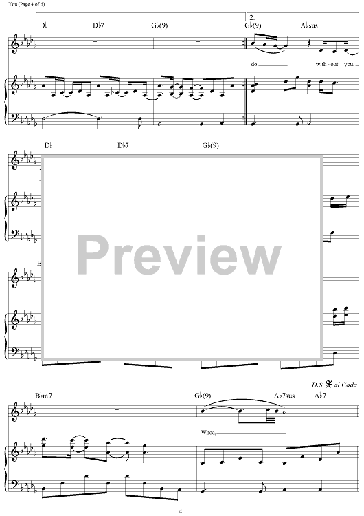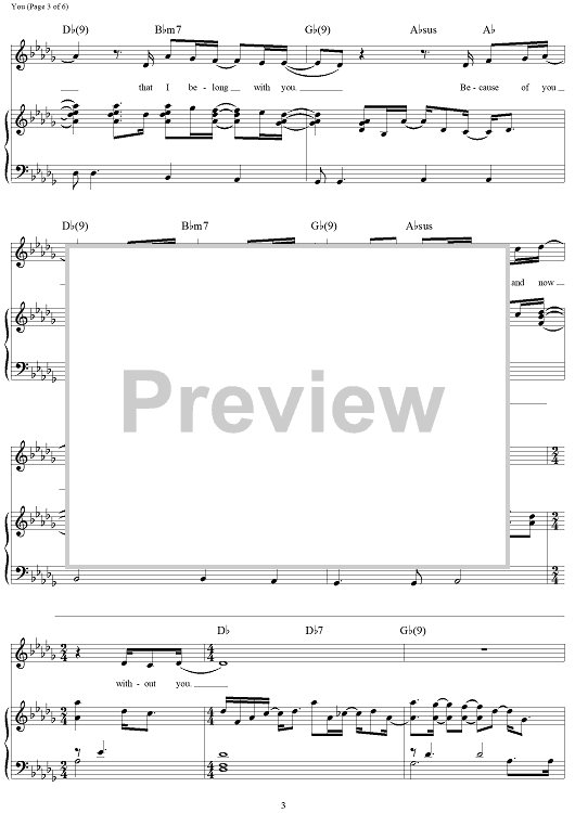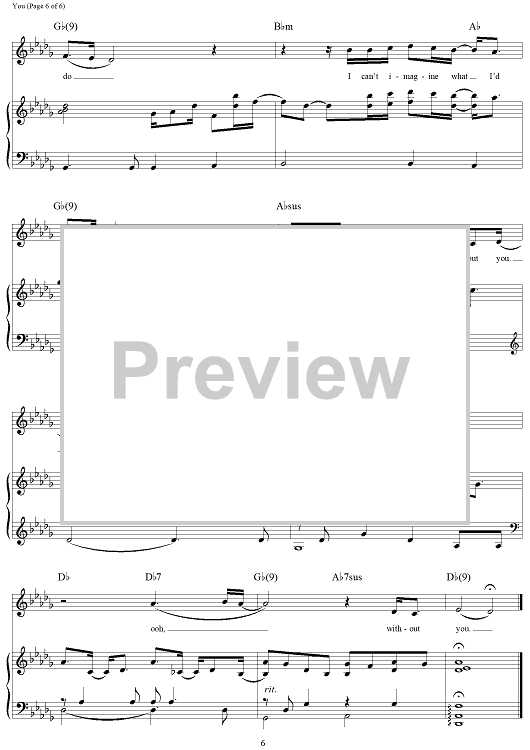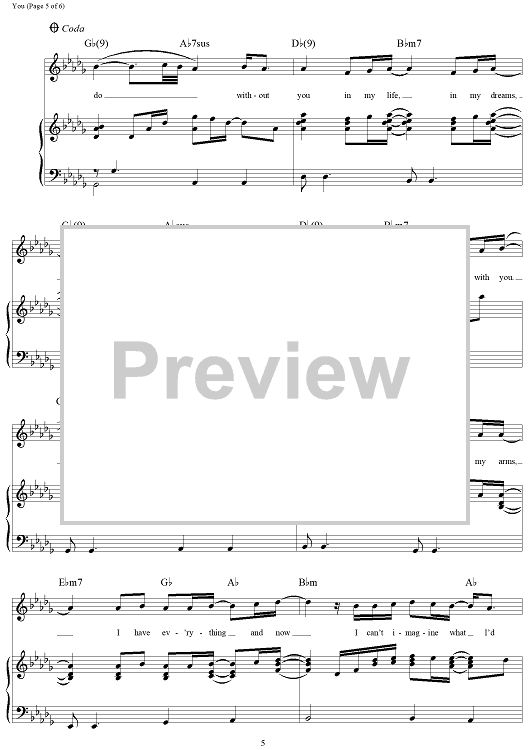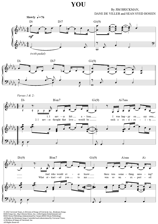 Digital Sheet Music for You by Jim Brickman, Dane Deviller, Sean Syed Hosein, Jane Krakowski scored for Piano/Vocal/Chords; id:293374