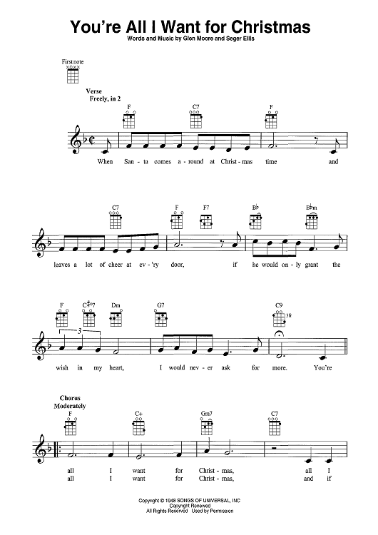 Digital Sheet Music for You're All I Want for Christmas by Glen Moore, Seger Ellis scored for Ukulele/Vocal; id:467773