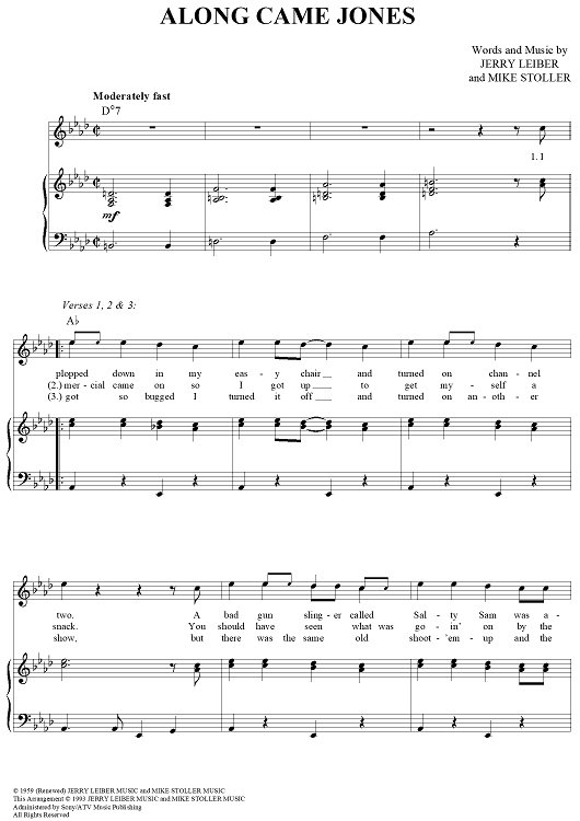 Digital Sheet Music for Along Came Jones by George Jones, Jerry Leiber, Mike Stoller, The Coasters scored for Piano/Vocal/Chords; id:250604