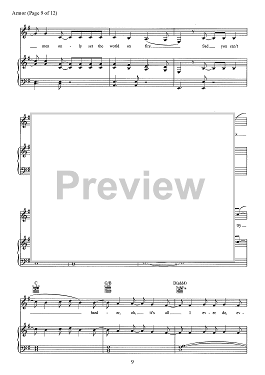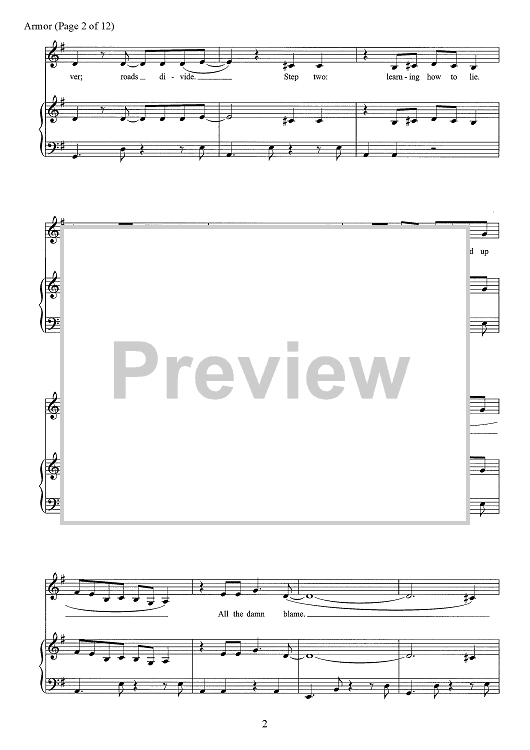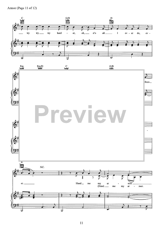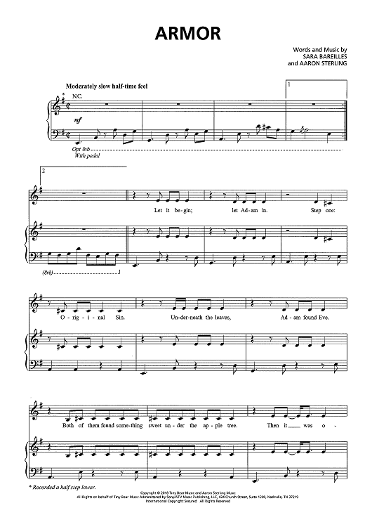 Digital Sheet Music for Armor by Sara Bareilles, Aaron Sterling scored for Piano/Vocal/Chords; id:467876